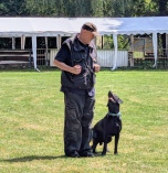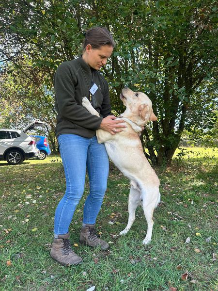 Viele die mich kennen wissen, dass ich erst seit dem letzten Jahr Workingtests laufe und dementsprechend immer noch sehr aufgeregt bin und noch nicht so viel Erfahrung habe. Ich hatte keine Ahnung, was uns in der F erwartet. Das Gelände war gut knackig: dichter Bewuchs im Wald, hohe Wiesen. Libby hat ihren Job sehr gut gemacht. Natürlich fehlt es ihr und auch mir noch an Erfahrung. Mit den Vollblinds unter Ablenkung einer Markierung mit Schuss hat sie sich noch schwer getan. Aber sie hat sich toll führen lassen und jedes Dummy reingeholt. Natürlich kostet jedes Kommando Punkte, aber mir ging es darum, mit Libby als Team zu bestehen. Und das haben wir geschafft! Ich bin sehr stolz, dass sie sich so toll hat führen lassen, auch wenn wir haben kämpfen müssen. Wir wissen um unsere Baustellen und werden nun gezielt unbeschossene Blinds unter Ablenkung trainieren.