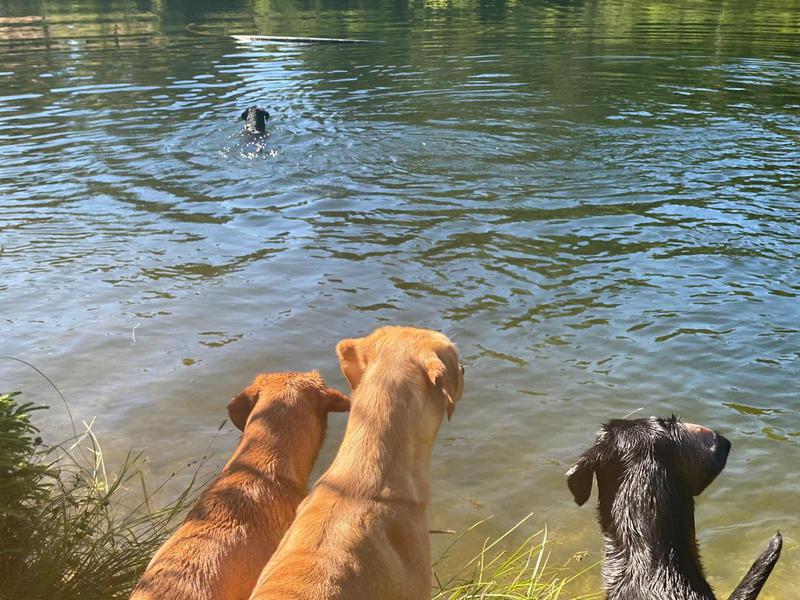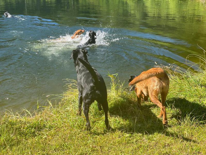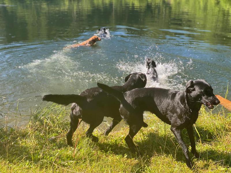 Wir hatten fast die ganze Woche Kaiserwetter, oft war es schon zu warm. Der Spaß kam nicht zu kurz, wir haben viel gelacht und trainiert. Das Gelände war, wie jedes Jahr, ein Traum. Die Hunde sind voll auf Ihre Kosten gekommen und ich bin sehr zufrieden mit der Leistung. Wir wissen um unsere Baustellen und daran werden wir weiter fleissig arbeiten. Sogar die Kleinen haben ihr erstes Retrieve gearbeitet.