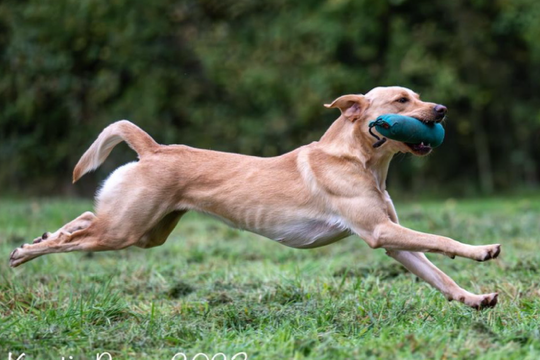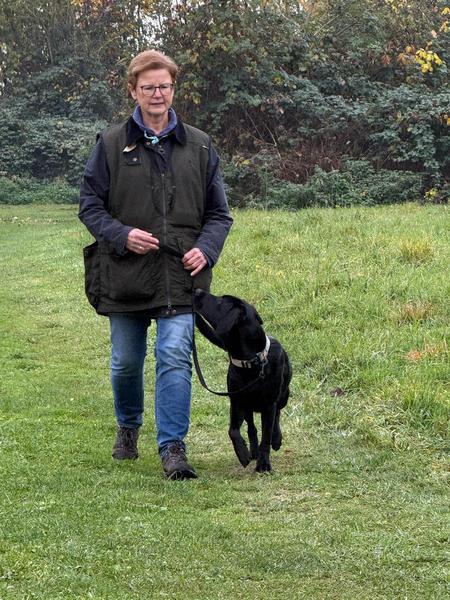 Charlotte - Die 18 Monate alte Hündin spielt gern, ist hoch motiviert bei Beute, die Sie ausdauerend sucht und gerne und freundig zu trägt. Während sie sich beim Spaziergang mehr an ihrer Besitzerin orientiert, bewegt sie sich im Parcours frei und weitflächig und sicher. Sicher beim Schuss.